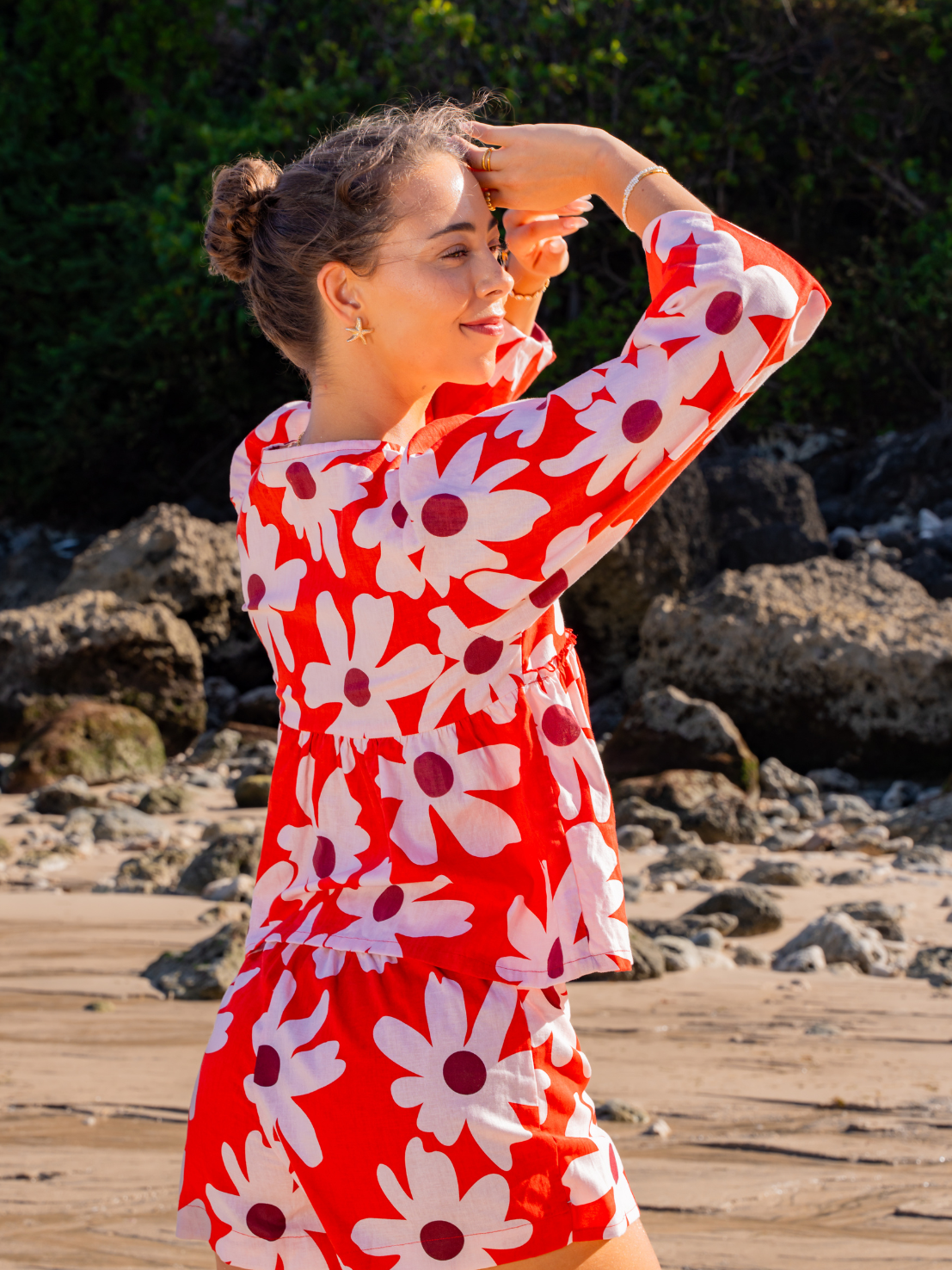 Celine Mini Skort in Playful Daisy with a stylish skirt look and the comfort of shorts. Perfect for casual wear.