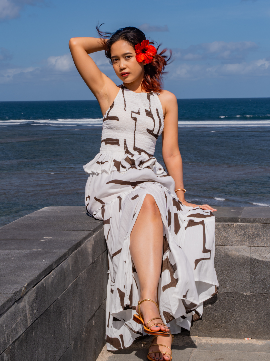 A versatile Keyla Skirt in Urban Glyphs designed in a flattering one-size fit. Crafted from soft and breathable fujete fabric, it drapes gracefully for all-day comfort. The elastic waistband ensures flexibility, making it easy to style for different body shapes. Perfect for casual outings or dressed-up occasions.